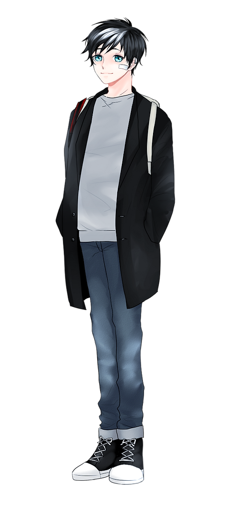 전체적으로 짙은 검은 머리카락이지만 앞머리에 네 갈래의 흰 브릿지가 있다. 쳐지면서 둥그런 눈매와 약간 입 꼬리가 올라간 고양이 입은 전체적으로 순한 느낌을 주며 아쿠아블루 색의 눈동자는 반짝거려 활발한 인상을 남기는 듯하다. (캐시점) 왼쪽 눈 밑 아래에 붙인 밴드는 흉터를 가리는 용도로 항상 붙이고 다닌다. 왼쪽 귀 위쪽에 기본형인 이어커프를 차고 있다.